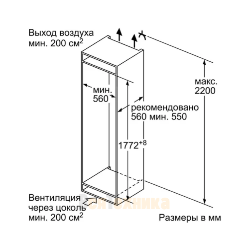 | Размер ниши для встраивания (В х Ш х Г), см | 177.5 х 56 х 55 |