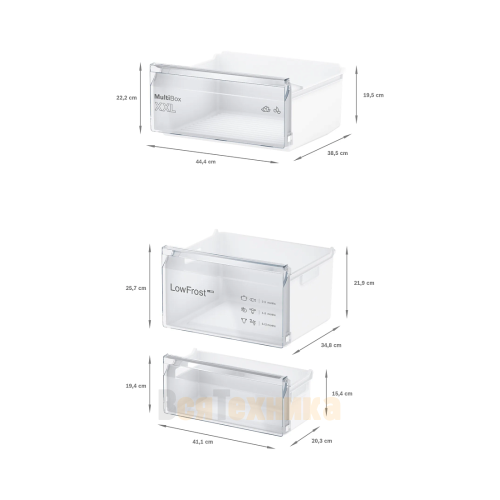 - NoFrost – никакого инея и разморозки: Забудьте о рутинной и трудоемкой разморозке! Технология NoFrost в обеих камерах (холодильной и морозильной) циркулирует сухой воздух, предотвращая образование инея и льда на стенках и продуктах. Это не только экономит ваше время, но и помогает продуктам сохранять естественную влажность, не обветриваясь.