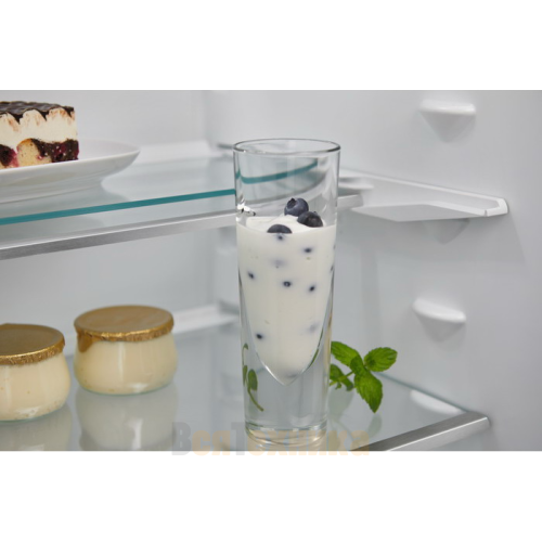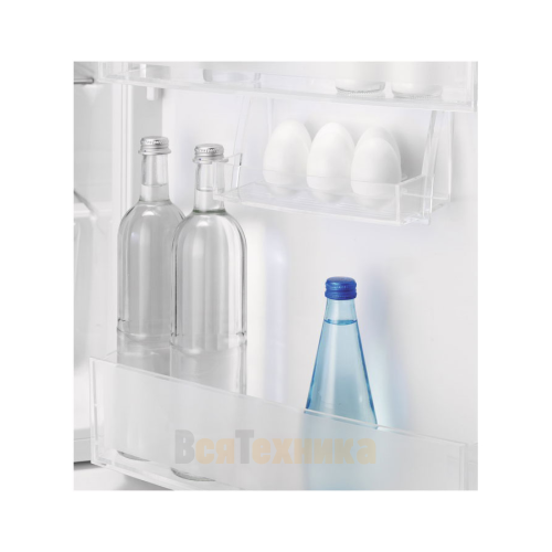 - Продуманная система полок: Прочные стеклянные полки с защитой от проливания легко переставляются, позволяя размещать даже габаритные упаковки и бутылки.