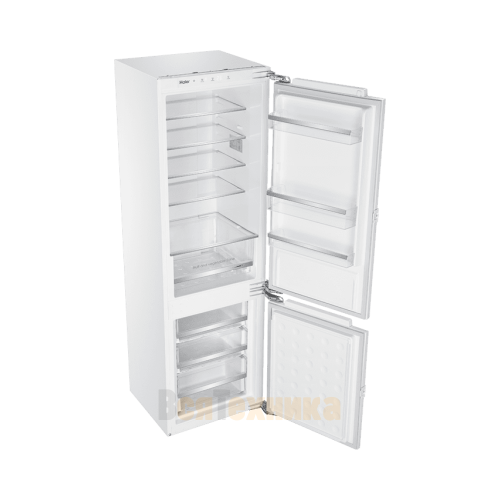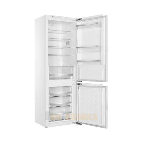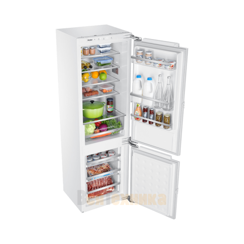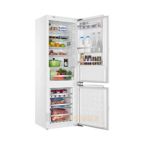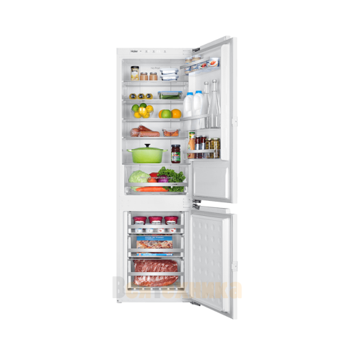 Встраиваемый HAIER BCFT628AWRU — отличный пример действительно современного и удобного холодильника высотой 177 см. Холодильник позволяет хранить одновременно много продуктов (холодильное отделение — 179 л, морозильное — 62 л), что важно для больших семей и для тех, кто любит готовить. Технология Total No Frost позволяет забыть о ручном размораживании — в обоих отделениях реализовано авторазмораживание. Надёжный компрессор обеспечивает бесперебойную работу холодильника при низком энергопотреблении — класс энергоэффективности А+.