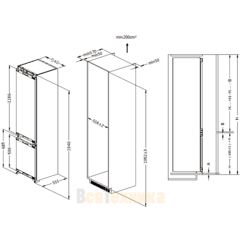 | Размер ниши для встраивания (ВхШхГ) (см) | 195.2 х 55.6 х min57 |