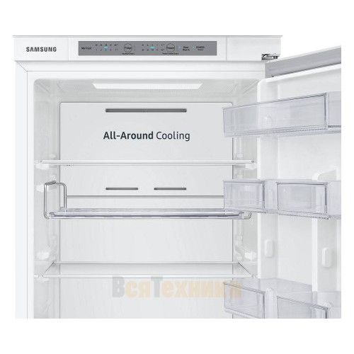 - Технология All-Around Cooling: Многопоточная система охлаждения равномерно распределяет холодный воздух по всем уголкам холодильника. Разница температур между полками минимальна, поэтому зелень на верхней полке и мясо на нижней остаются одинаково свежими.