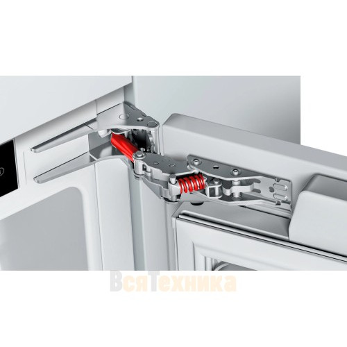 - Полная интеграция в мебель: Благодаря специальной конструкции фасада и петель, холодильник безупречно сочетается с кухонным гарнитуром, создавая единую стильную поверхность.