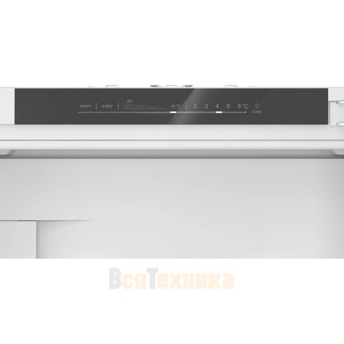 - MultiAirflow — равномерная циркуляция воздуха: Несколько каналов подачи холодного воздуха расположены по всему периметру камеры. Это гарантирует, что температура на верхней и нижней полках, в дверных полках и в ящиках будет одинаково стабильной. Никаких «теплых» зон — каждый продукт получает идеальные условия.