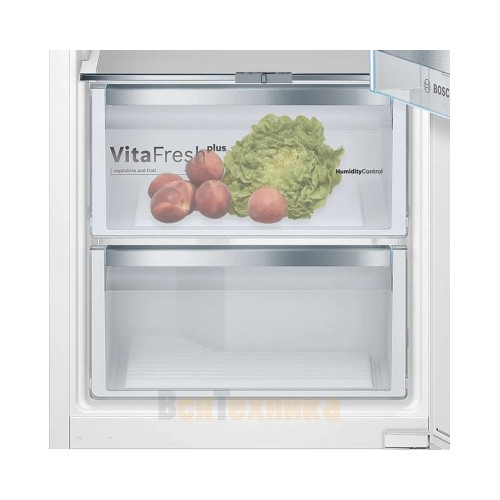 - Технология VitaFresh: Специальная зона с регулируемой влажностью и температурой около 0°C. Здесь овощи, фрукты, зелень и свежее мясо сохраняют свою текстуру, витамины и свежесть в 2-3 раза дольше, чем в обычном отделении холодильника.